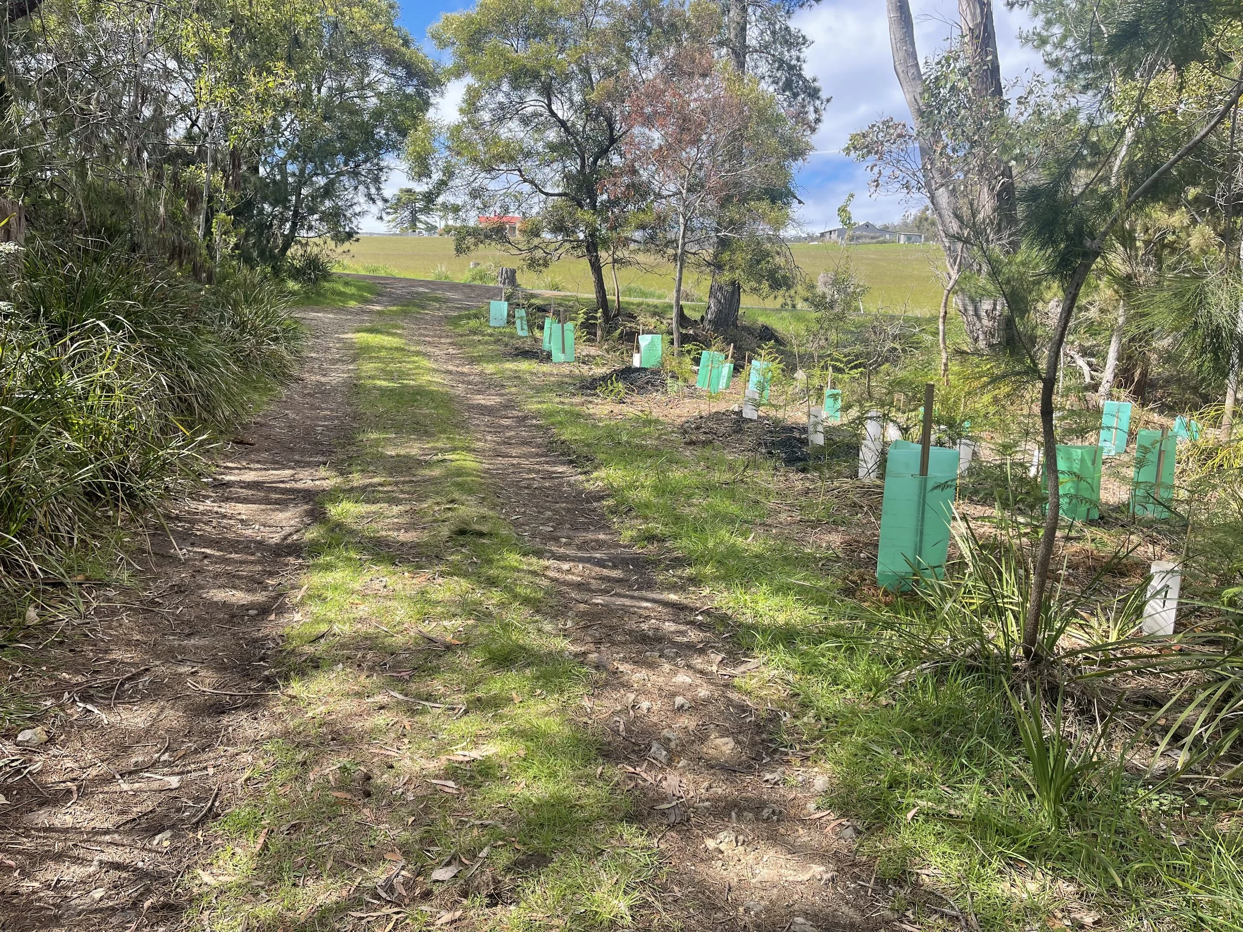 Keeping weeds such as blackberry under control is a constant effort, but gradually native plants grown from locally-collected and grown seed are re-establishing and filling the voids left by disturbance and weed removal.